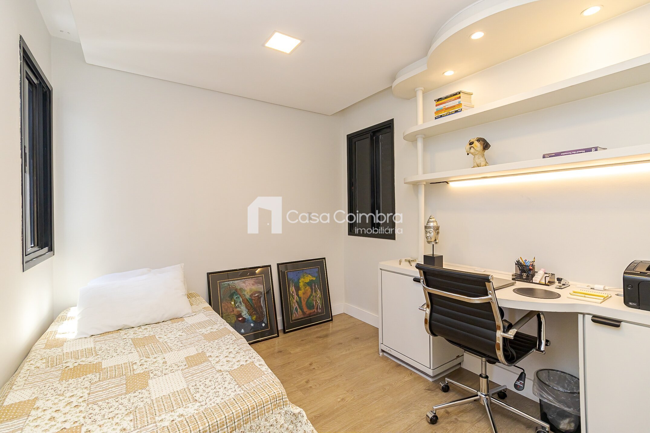 - 2 suítes confortáveis (uma atualmente usada como home office com bancada, facilmente reversível)
