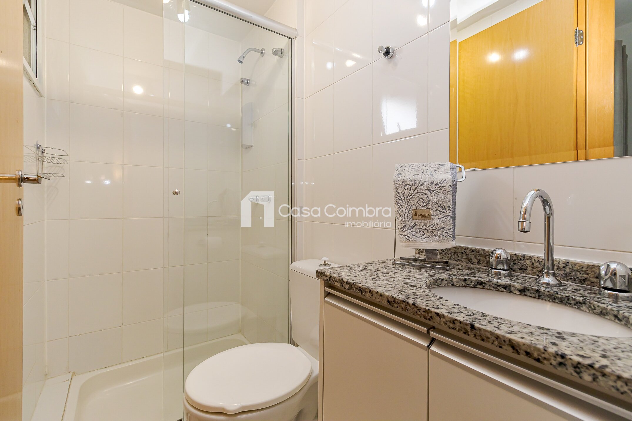 • Banheiro com armário e box de vidro