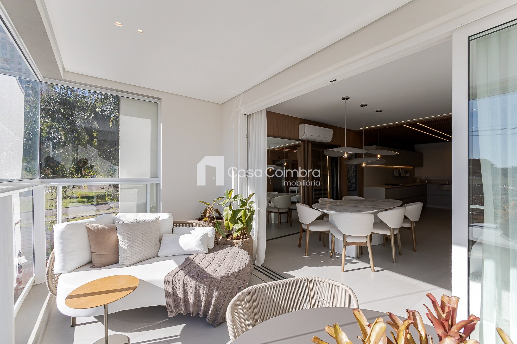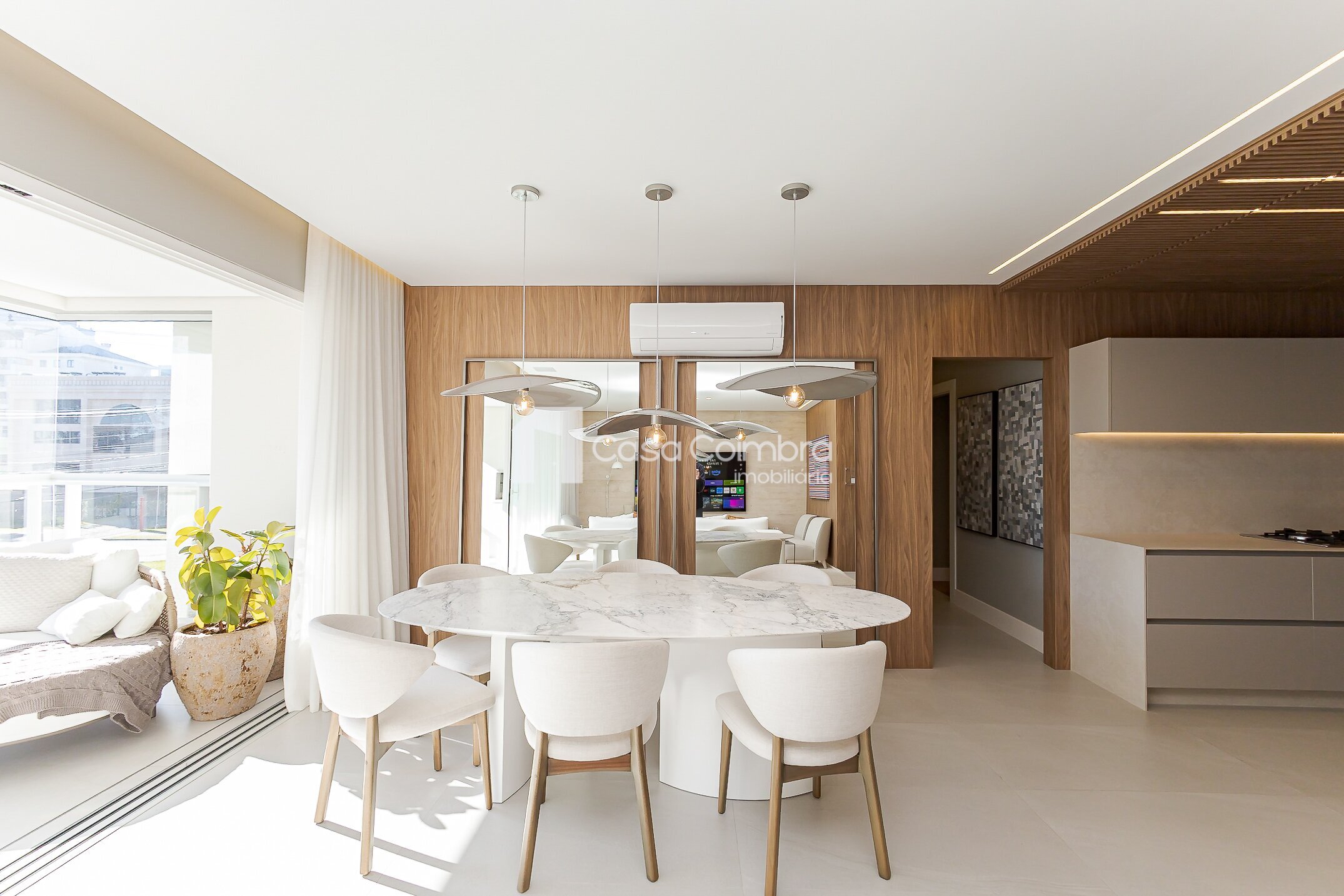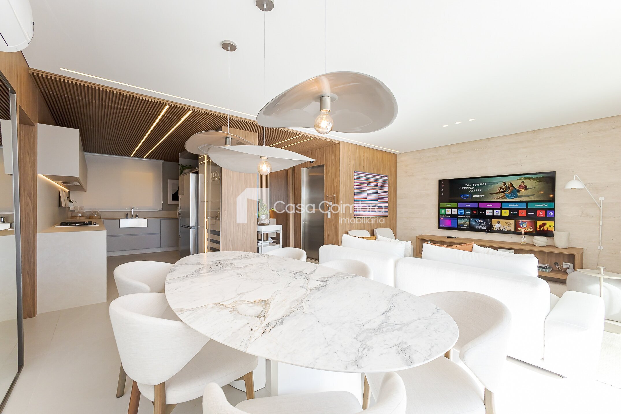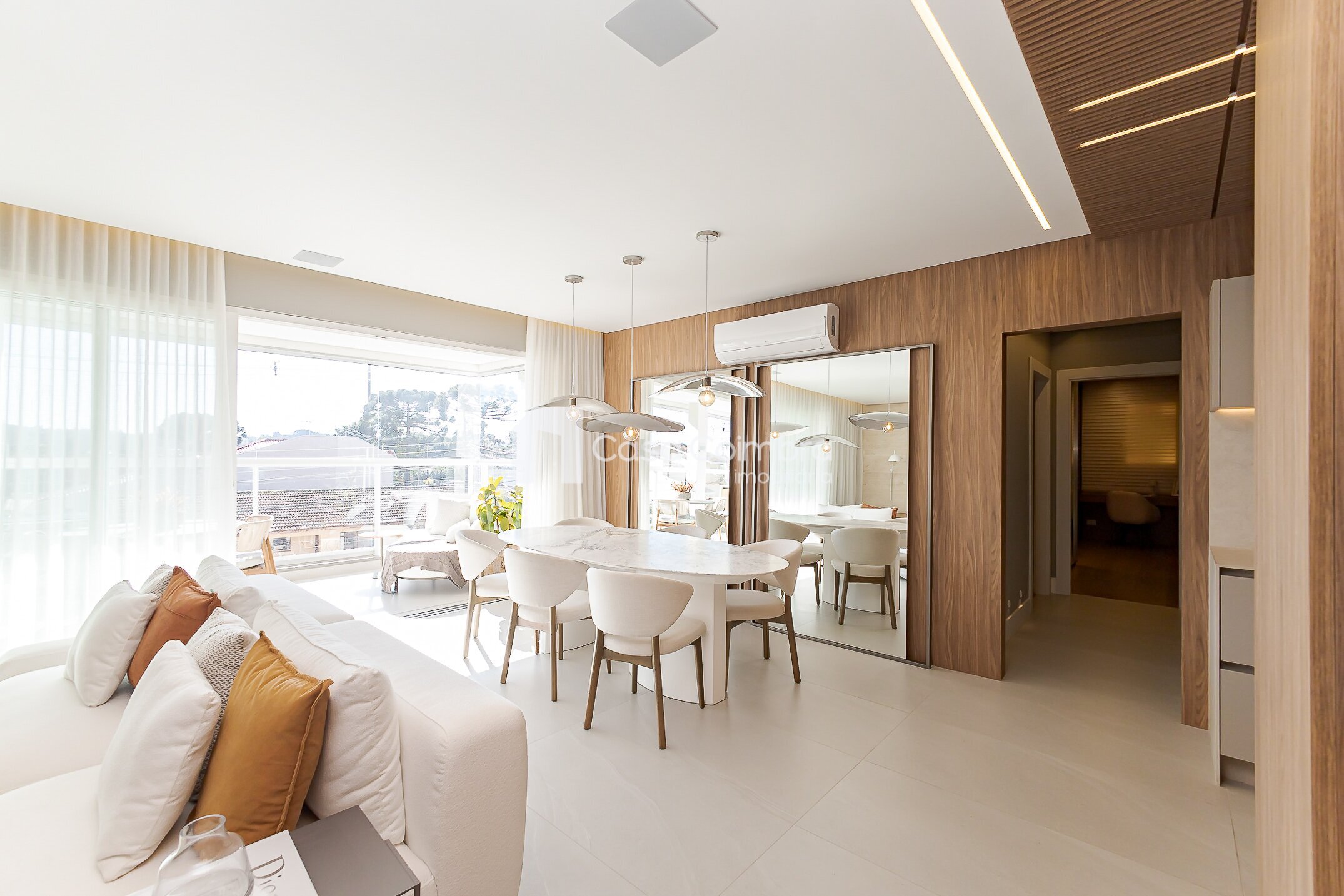 - Sala de estar ampla, com ambientes integrados e iluminação natural.