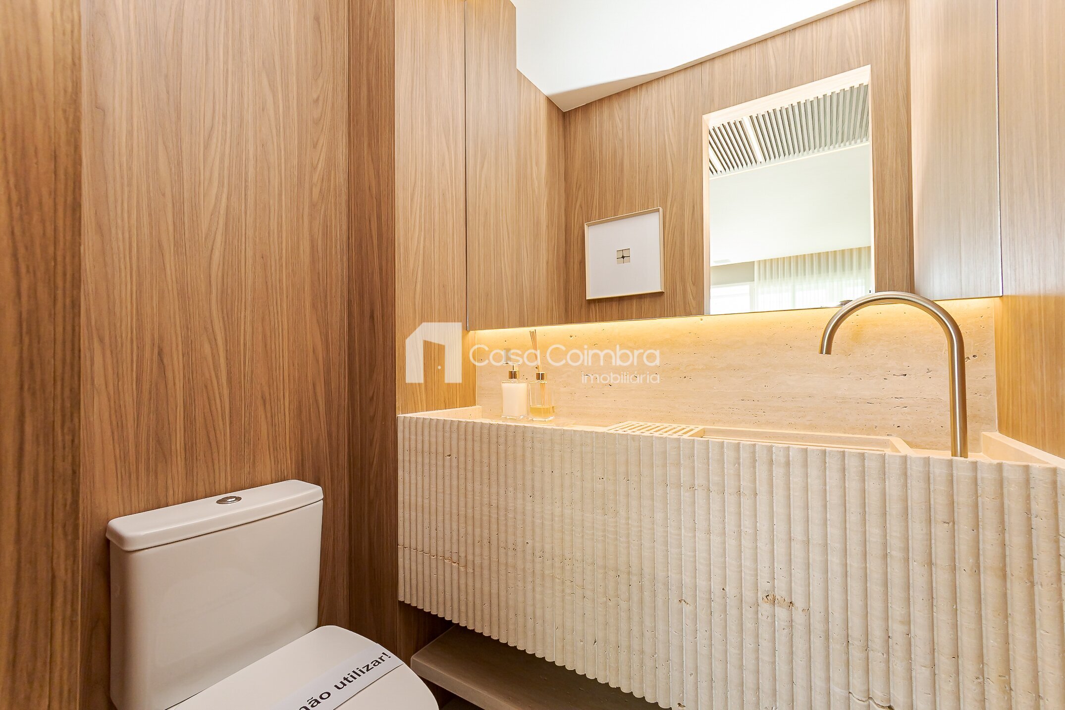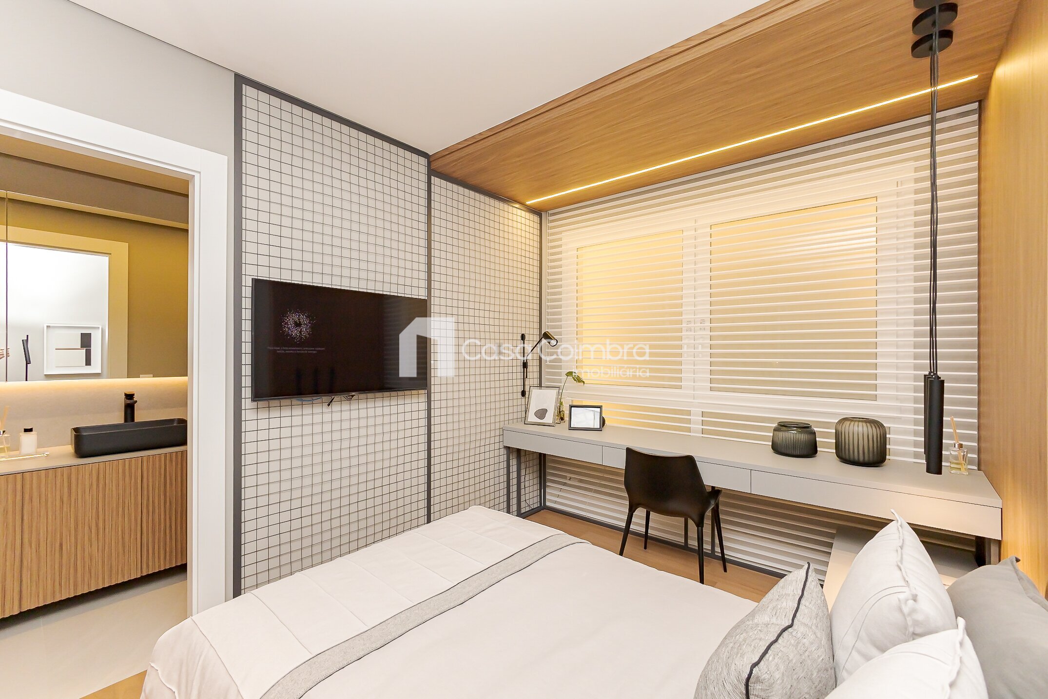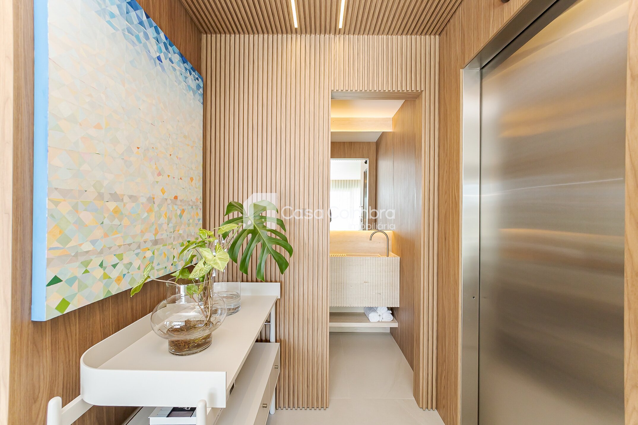 Pé-direito duplo de 4 metros no hall de entrada, conferindo imponência e sofisticação desde o primeiro olhar.