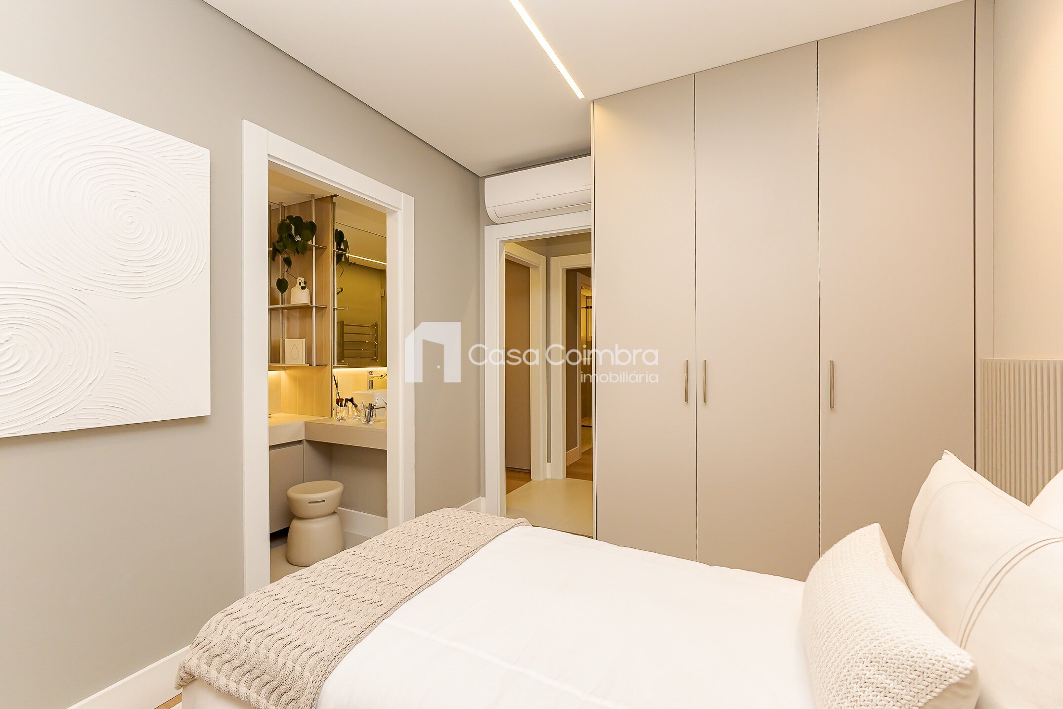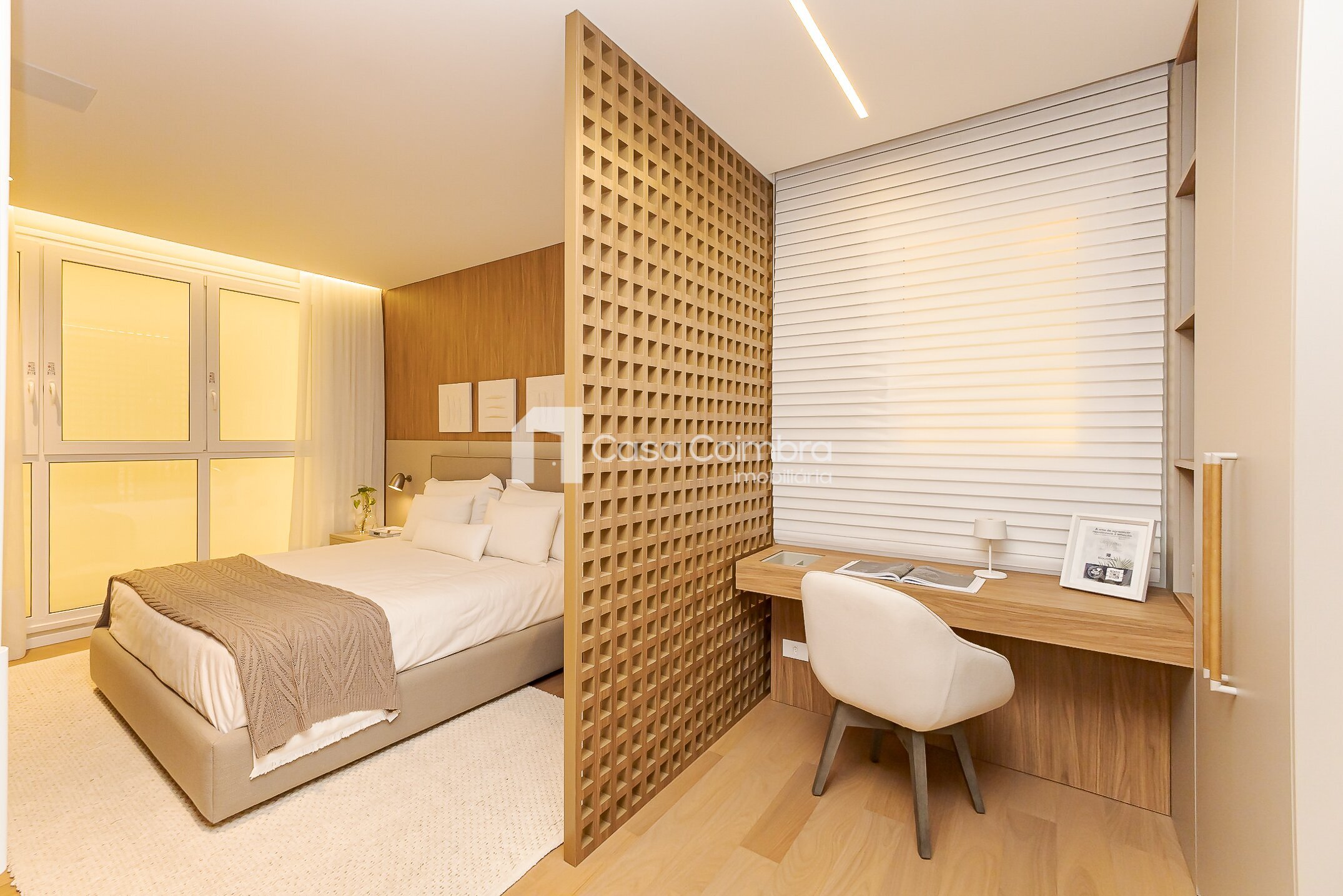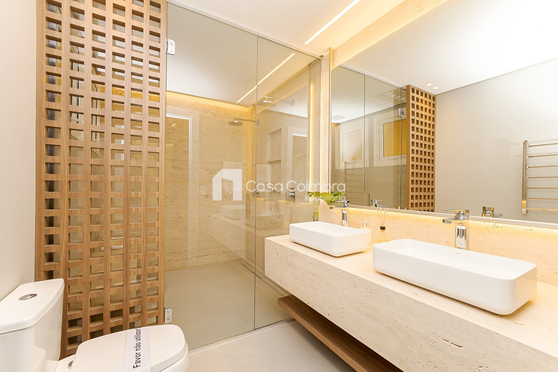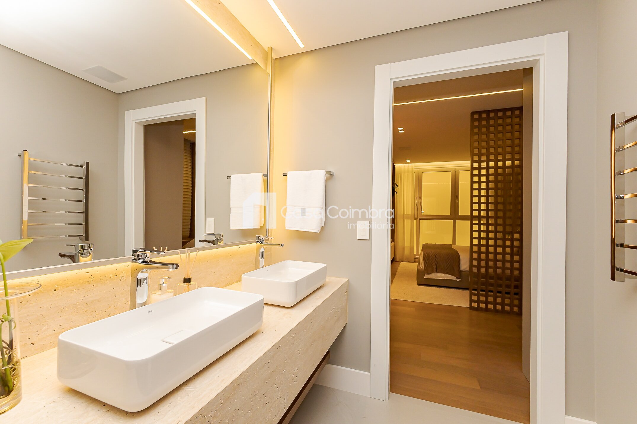 Pé-direito duplo de 4 metros no hall de entrada, conferindo imponência e sofisticação desde o primeiro olhar.
