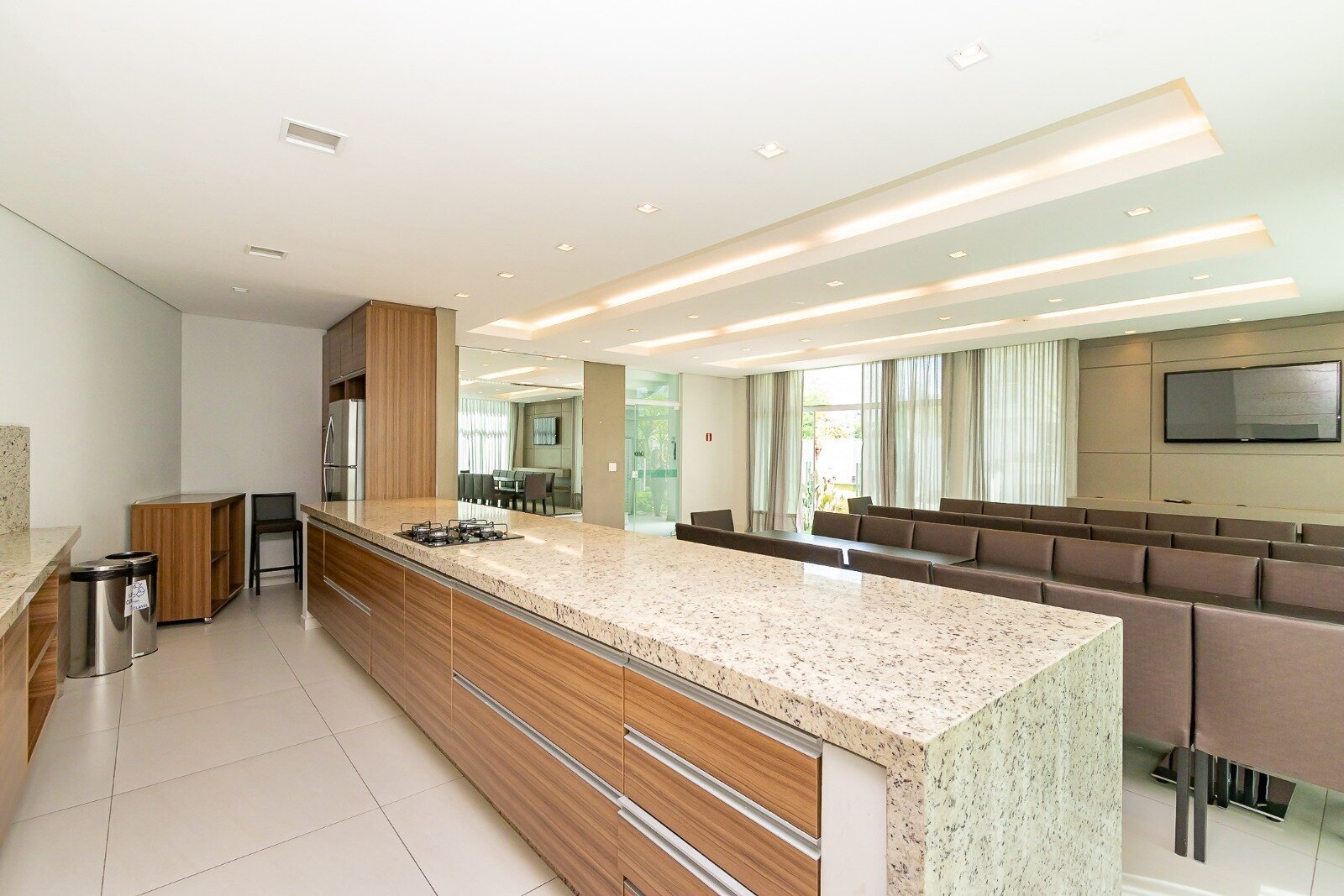 Espaços funcionais: escritório privativo, cozinha planejada e área de serviço.